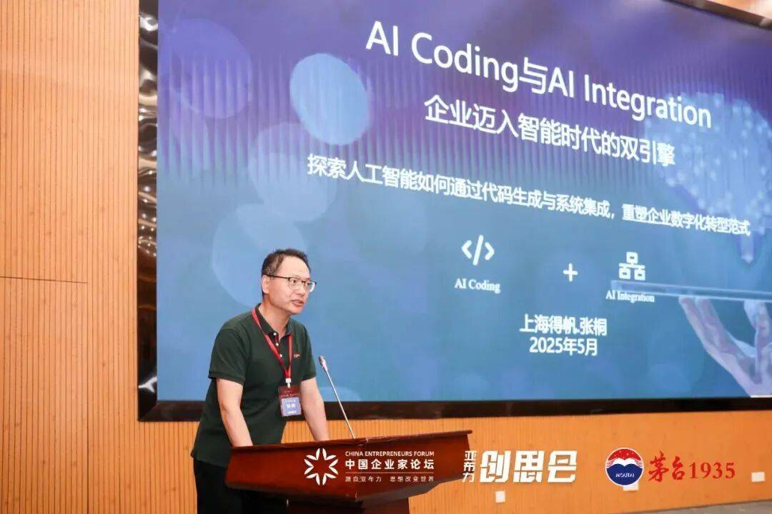 张桐的讲话标题问题为“AI Coding取AI Integration:企业迈入智能时代的双引擎”。
